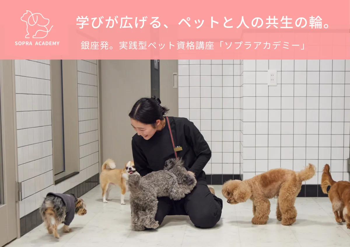 ソプラ銀座株式会社が新しく開設する「ソプラアカデミー」は、ペットと人が共存する社会を実現することを目的に設立された教育ブランドです。これにより、飼い主が抱えるさまざまな課題を解決への道を拓いていきます。