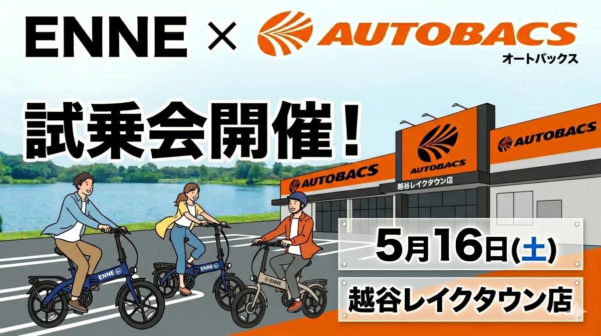 2026年5月16日、埼玉県越谷市のオートバックス越谷レイクタウン店にて、ENNE ZEROの試乗会が開催されることが決まりました。この機会に、レイクタウンを訪れるついでにぜひお立ち寄りいただきたいです。