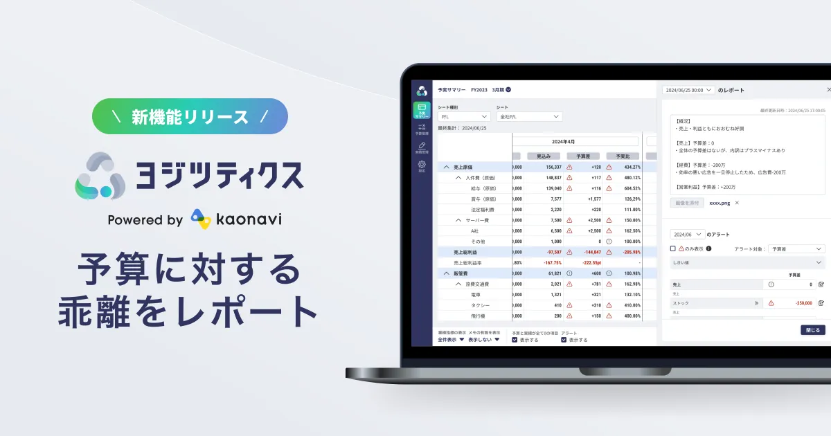 2025年10月30日、株式会社カオナビが提供する予実管理システム「ヨジツティクス」は、予算に対して実績や見込みが乖離した際にアラートを出し、レポートする新機能を開始します。この機能を活用することで、企業は販売管理費や売上原価などのコストがどのように予算とずれているかを素早く確認でき、適切な行動をとることが可能になります。