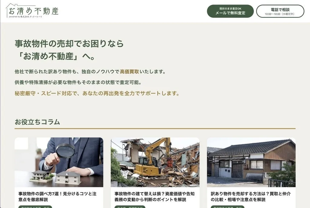 熊本と福岡に登場!事故物件の買取専門サービス「お清め不動産」