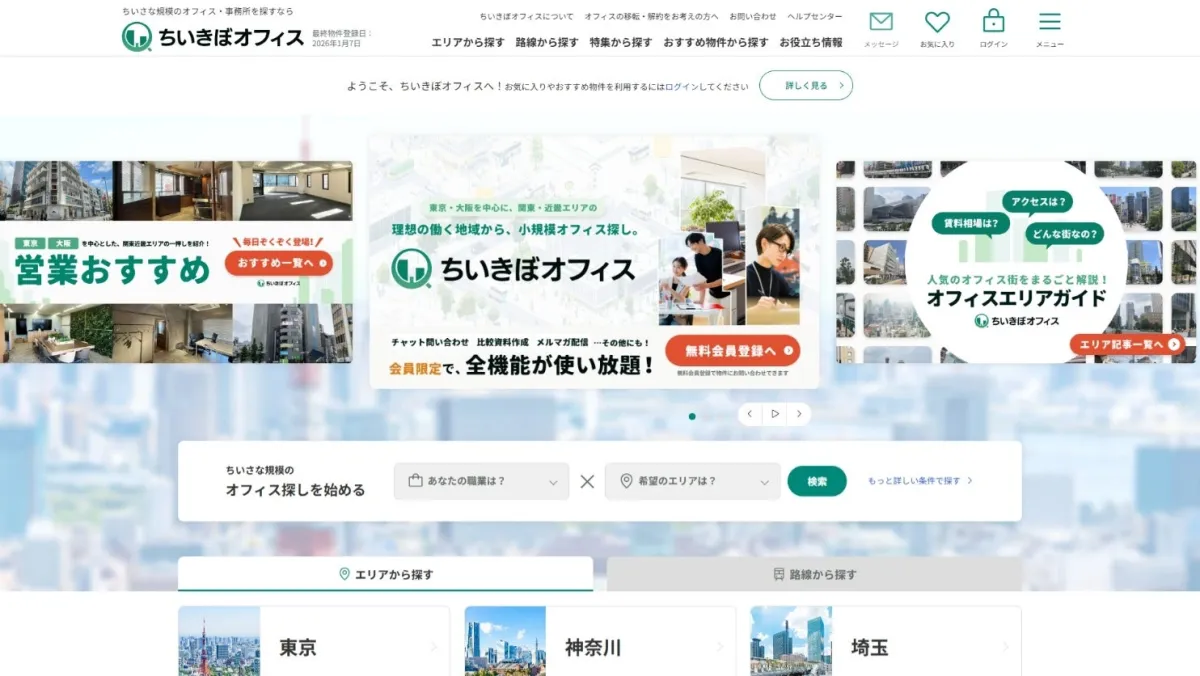 小規模オフィスに特化した賃貸検索サイト「ちいきぼオフィス」