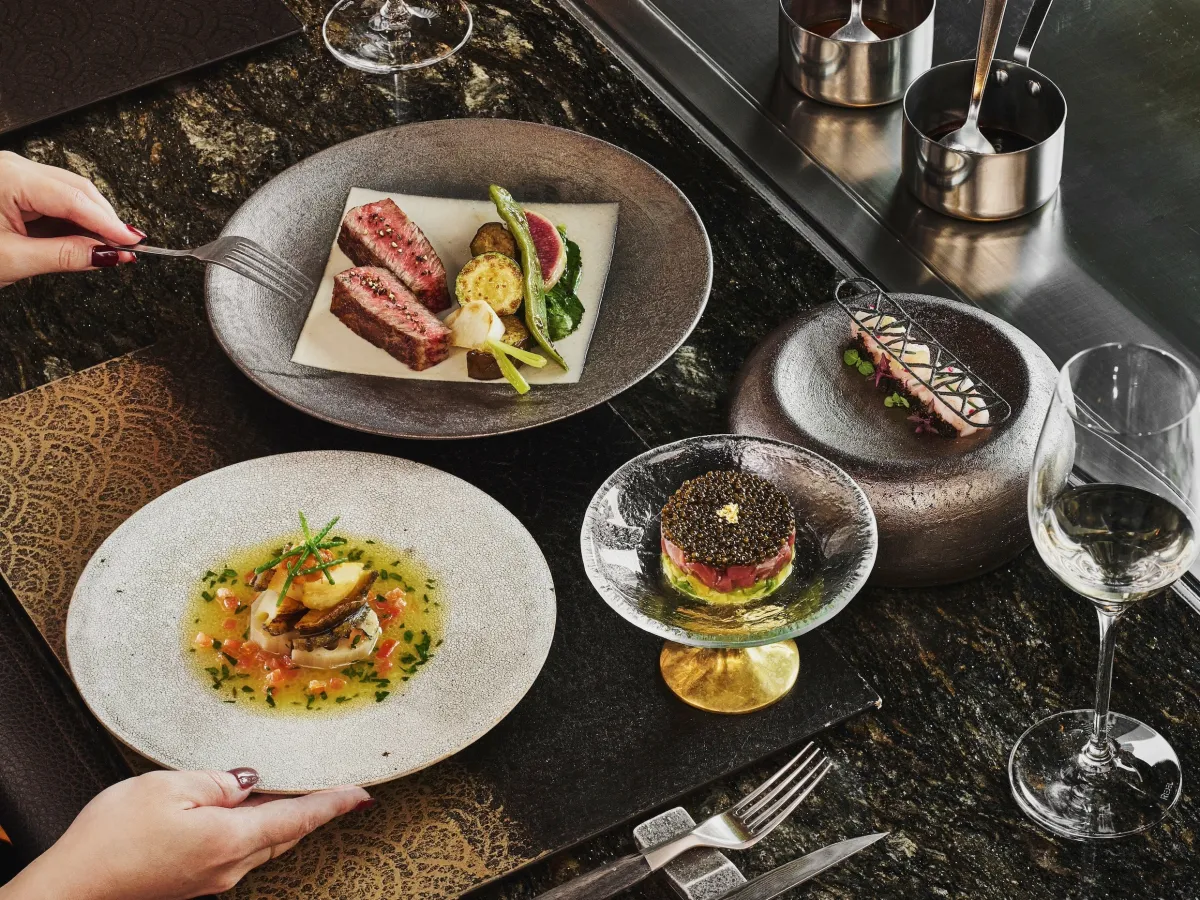トスカーナの温かな邸宅を感じさせる「ラ ベデュータ」では、シェフ吉田 道昭が手掛けるクリエイティブなフェスティブメニューが揃っています。ウェルカムドリンクは、真珠のパウダーを含むリキュール「アンブロシア15」で、柑橘とスパイスの香りが漂う華やかな一杯です。また、前菜に提供される「キャビア ロイヤル クリスタルの小さなクロスタータ」は、寒鰤のタルタルと白人参のピューレが奏でる奥深い一皿です。さらには、ノドグロや奈良県産みわ牛を使用した料理も用意されており、食材の個性が際立つこと請け合いです。