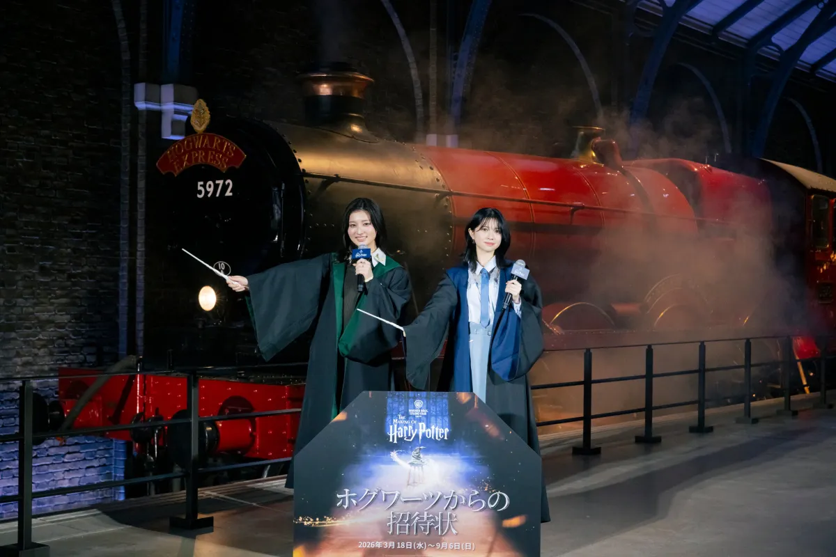 本企画のオープニングには初代アンバサダーである桜田ひよりさんと吉川愛さんが登壇し、トークセッションで企画の見どころを語ってくれました。「ホグワーツ特急 出発進行!」の掛け声とともに、列車の汽笛と煙の演出で華やかなスタートを飾りました。お二人は昨年11月にアンバサダーに就任して以来、スタジオツアーの魅力を活かした動画も公開しており、ファンとの交流が期待されています。