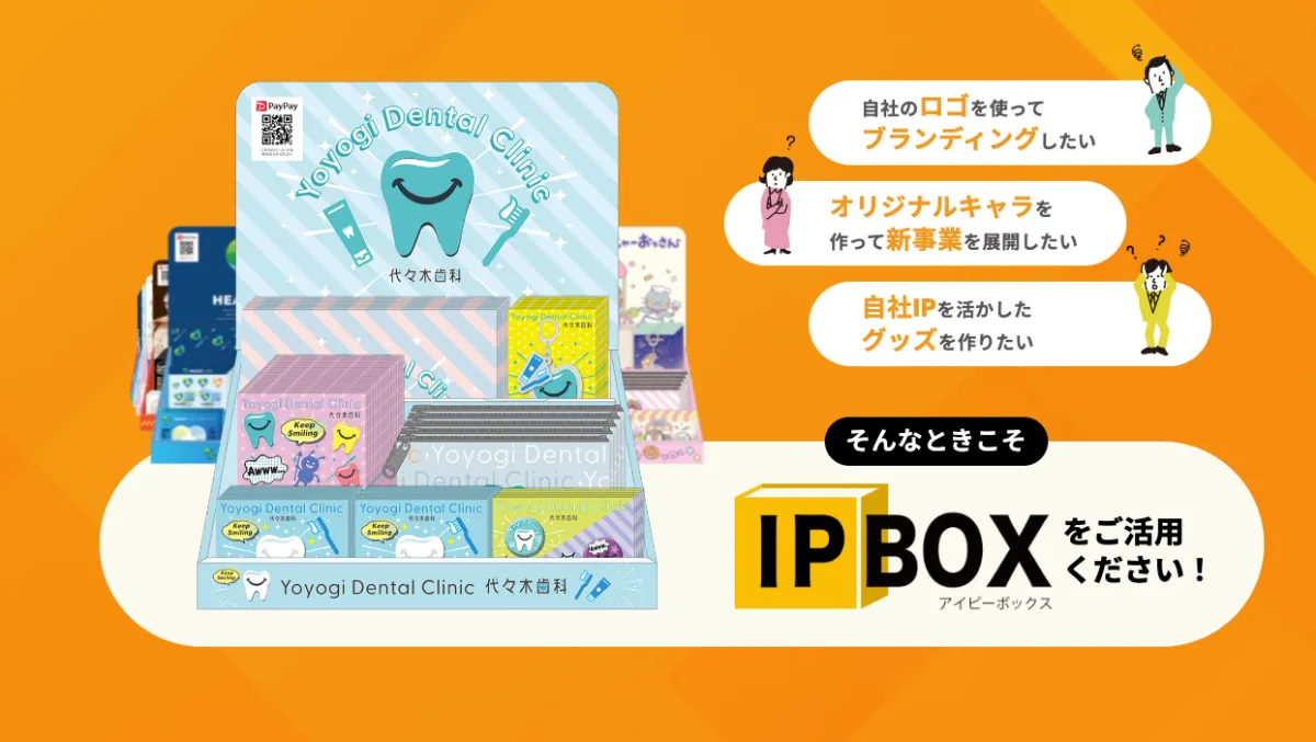 従来の販促アイテムとは異なり、IP BOXは多様なシーンでの活用を想定しています。例えば、展示会やイベントでの販売用グッズ、自社店舗や受付での配布用商品としての展開、新しいキャラクターやブランドの市場テスト、社内記念品や周年記念グッズなどさまざまな用途があります。また、これらの商品を通じてSNSキャンペーンとも連動させた施策が展開可能です。