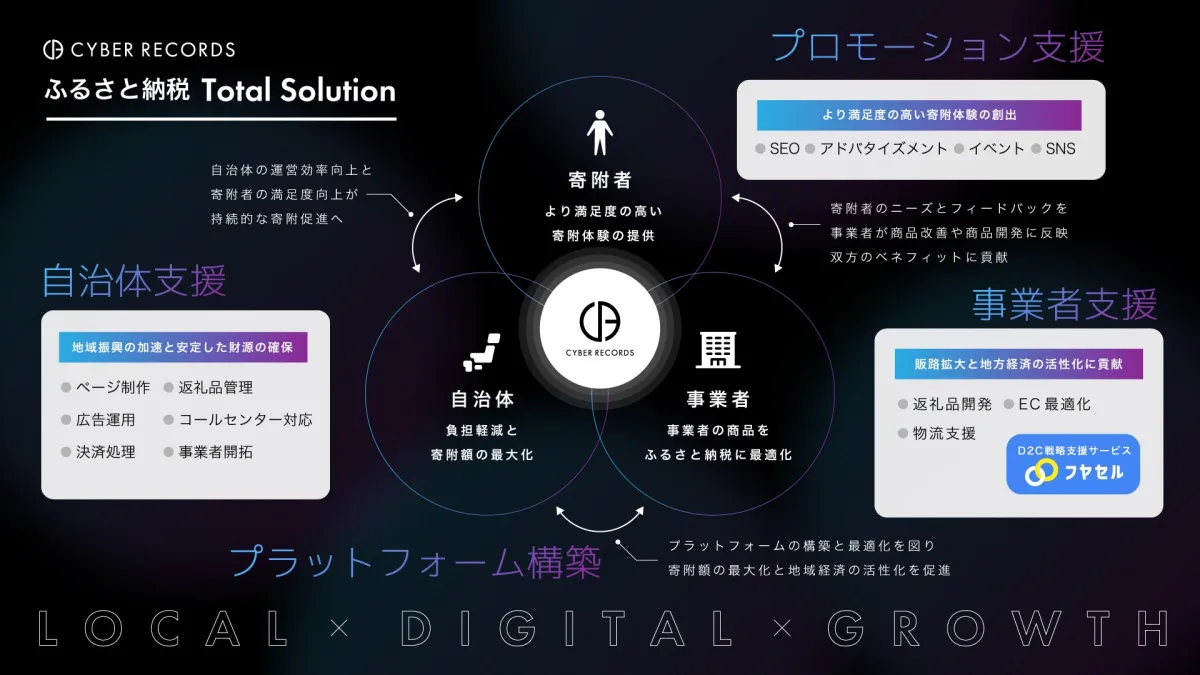 株式会社サイバーレコードは、地域の発展と成長を目指す新たなソリューションとして、ふるさと納税トータルソリューションを発表しました。これは、自治体や事業者がより効果的に地域資源を活用し、寄附を受ける仕組みを提供するものです。この新しい施策は、デジタルな手法を駆使して、地域経済の発展に寄与することを目的としています。