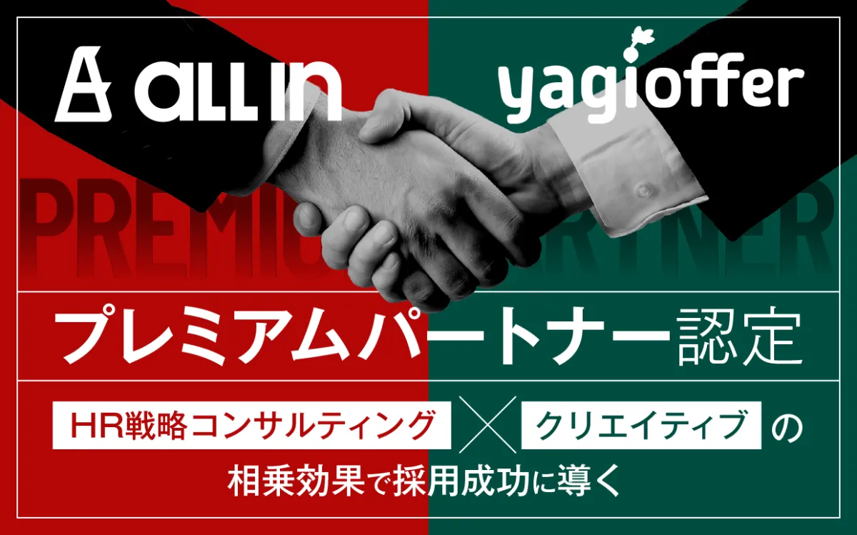 オールイン株式会社が、株式会社Yagishが提供するダイレクトリクルーティングサービス『yagioffer』のプレミアムパートナーとして認定されました。この認定は、オールインが手掛けるHRコンサルティング及びブランディング戦略が高く評価された結果です。
