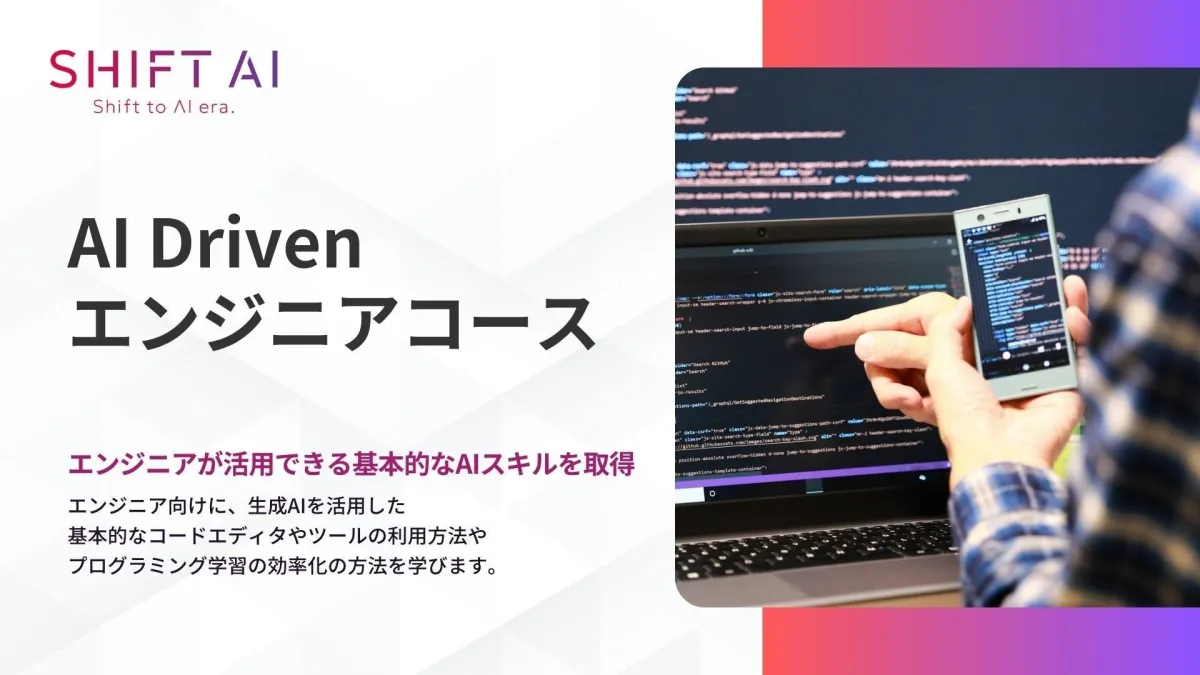 2025年4月14日、株式会社SHIFT AIが新しく「AI Drivenエンジニアコース」を提供開始します。本コースは、生成AIを用いてシステム開発の各フェーズを効率化し、生産性と品質の向上を図ることを目指します。