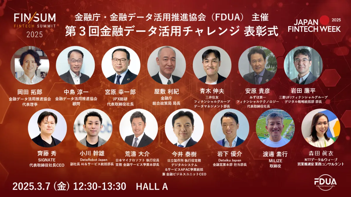 2025年3月7日、一般社団法人金融データ活用推進協会(FDUA)は、金融業界最大のデータ分析コンペティションである「(金融庁共催)第3回金融データ活用チャレンジ」の表彰式を盛大に開催しました。今回のコンペには、1,544名の参加者が集まり、合計5,244件の作品が提出されました。