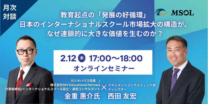 近年、日本におけるインターナショナルスクールの市場は目覚ましい成長を続けています。少子化や教育市場の縮小が問題視される中、どうしてこの特定の分野だけが順調に拡大を続けるのでしょうか? その鍵を探るために、株式会社マネジメントソリューションズ(MSOL)が開催するオンラインセミナーが注目されています。