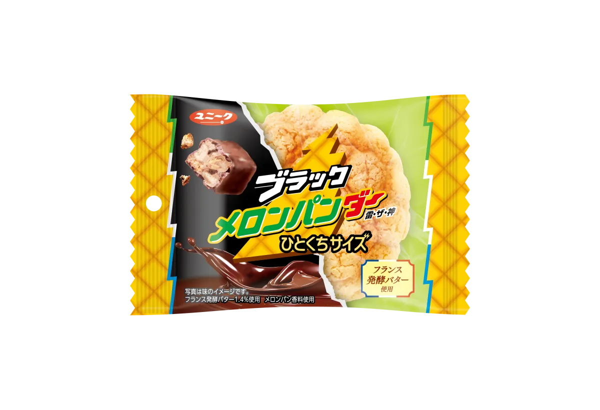 「ブラックメロンパンダーひとくちサイズ」は、人気のメロンパンをリスペクトしつつ、ブラックサンダーの食感や風味と融合させることで、一つの新商品として生まれ変わりました。メロンパンの軽やかさと甘みを感じられるクッキー生地に、ザラメ糖のしゃりっとした食感を合わせ、さらにココアクッキーの苦味がほのかに感じられます。これにより、メロンパンとブラックサンダーが絶妙に調和した新しい味わいが楽しめるようになっています。