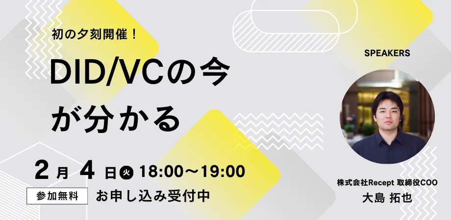株式会社Receptは、DID(Decentralized Identifier)とVC(Verifiable Credentials)に関するウェビナーを、2025年2月4日(火)の18:00から19:00まで開催します。これは、2025年1月14日にランチタイムに実施した内容と同様で、参加者のリクエストに応じて、新たに夕方の時間帯での開催が決定されました。