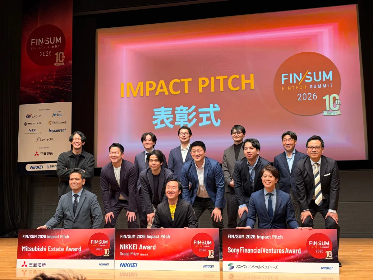 FIN/SUMは、日本経済新聞社と金融庁が共同で開催している、日本のフィンテック業界における重要なイベントです。金融機関やスタートアップ企業、テクノロジー会社、さらには投資家や行政関係者が一堂に会し、日本の金融の未来について議論が行われます。今年のスタートアップコンテストでは、65社のエントリーの中から選ばれたファイナリスト9社がその舞台で発表を行いました。