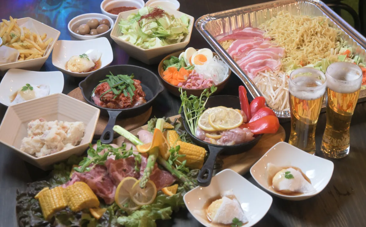 この新たなコースは、屋内の温かな環境でBBQと居酒屋メニューの両方を楽しむことができるハイブリッドスタイル。寒い冬でも、グリルで焼きながら同時に会話を楽しむことで、夏のBBQのような楽しさを引き出します。通常の居酒屋メニューに飽きてきた人にこそ試してほしい、この新しい飲み会スタイルです。