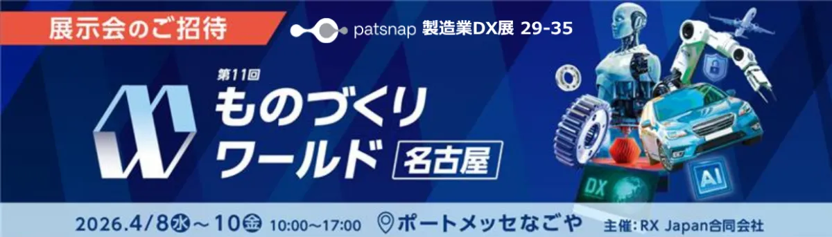 2026年4月8日から10日まで、名古屋のポートメッセなごやで開催される【第11回 ものづくりワールド】に、Patsnapが初めて出展します。このイベントは製造業に関する最新技術や製品を紹介する貴重な機会で、製造業のDX(デジタルトランスフォーメーション)を推進するさまざまな企業が揃います。