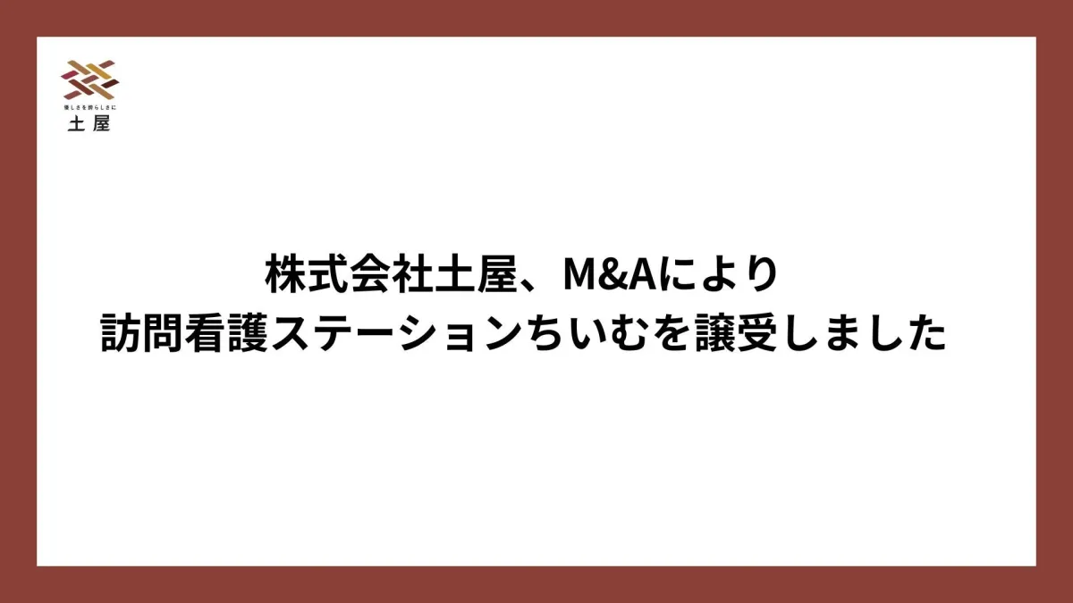株式会社土屋(岡山県井原市、代表取締役:高浜敏之)は、訪問看護ステーションちいむの事業を譲受するM&Aを実施しました。この取り組みにより、土屋は全国的な介護サービスの質をさらに向上させ、特に大阪府東大阪市での在宅看護サービスの充実を図ります。