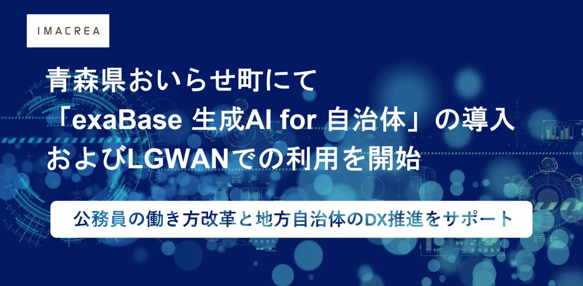 青森県おいらせ町にて、株式会社イマクリエが提供する「exaBase 生成AI for 自治体」の導入が開始されました。このサービスは、公務員の働き方改革や地方自治体のデジタルトランスフォーメーション(DX)を推進することを目的としています。