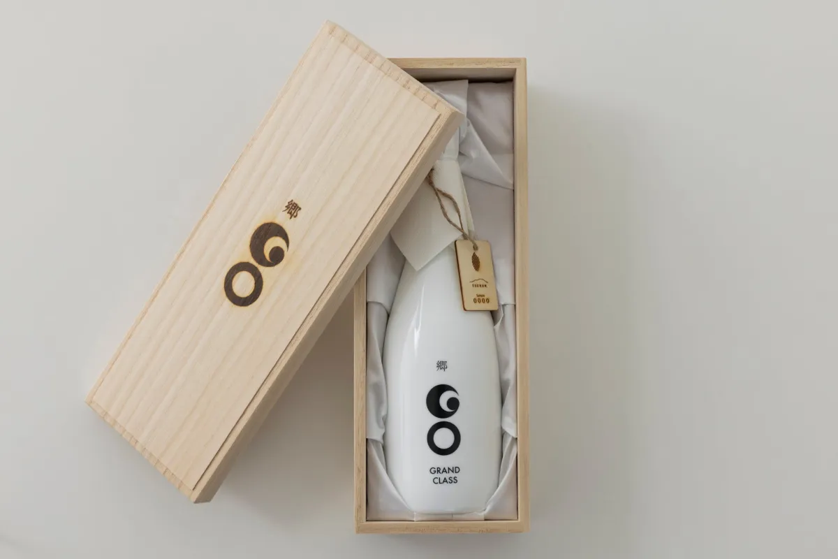 展示するフラッグシップモデルは、「GO GRANDCLASS 魚沼コシヒカリ Edition」です。この商品は国際的な賞も受賞しており、品質の高さが証明されています。そして、サステナビリティを考慮し、贈答用に適した桐箱に収めたこの日本酒は、新年の祝杯にふさわしい高級感を漂わせています。