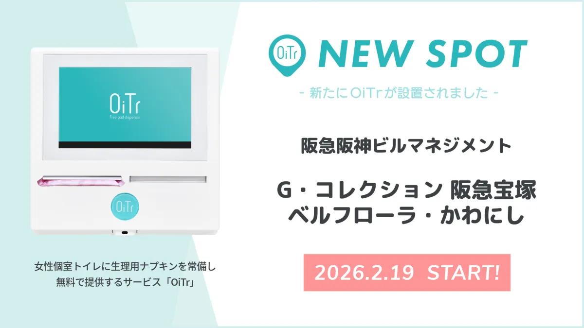 オイテル株式会社が展開する全国初の生理用ナプキン常備サービス「OiTr(オイテル)」が、ついに阪急電鉄宝塚線沿線の商業施設「G・コレクション阪急宝塚」と「ベルフローラ・かわにし」に導入されました。このサービスは、女性用個室トイレ内に生理用ナプキンを常備し、無料で提供することを目的としています。これにより、女性たちがいつでも安心してトイレを利用できる環境が整いました。