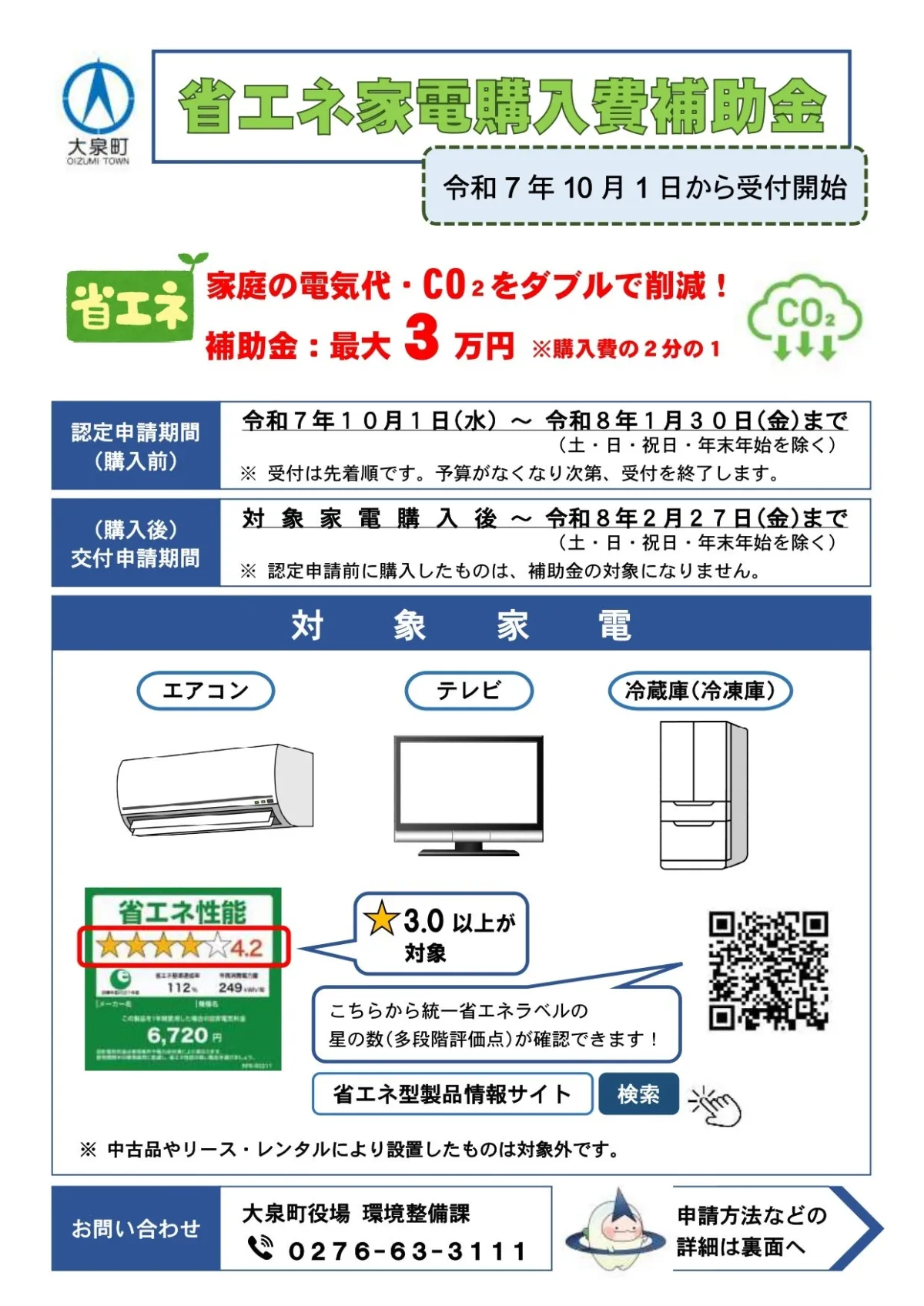 群馬県の大泉町では、エネルギー価格の高騰と地球温暖化の問題に対処するため、「省エネ家電製品購入費補助金」という新しい制度が導入されました。この制度は、町内に住む人々が対象で、特定の省エネ家電を購入した際に、購入費用の2分の1、上限3万円が補助されるものです。