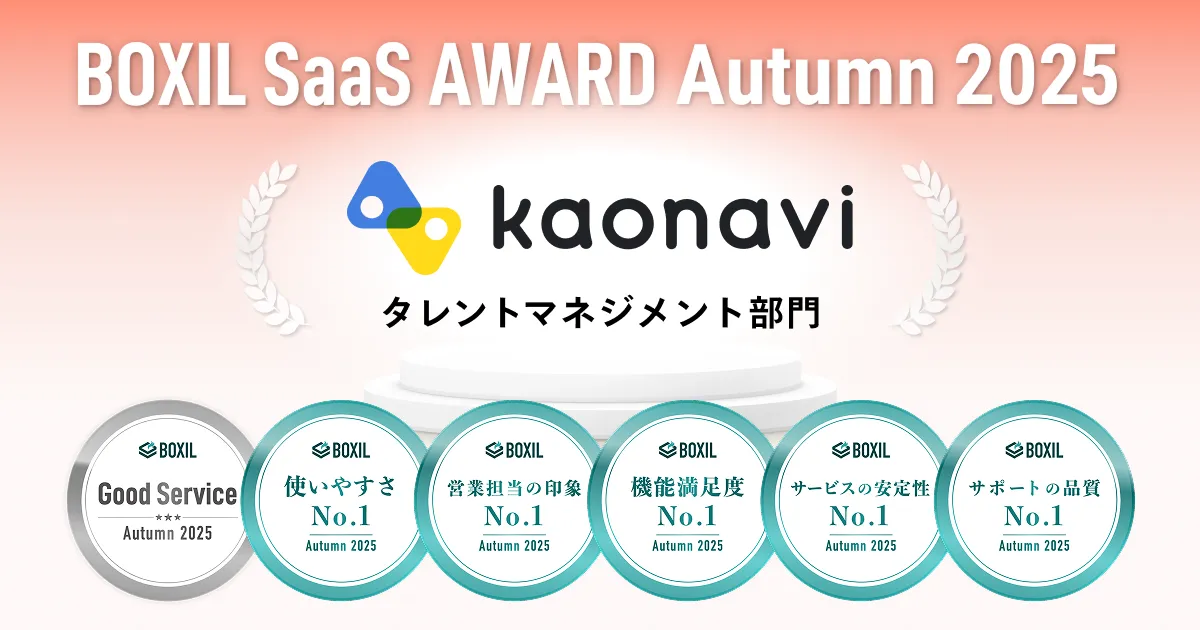 株式会社カオナビが、国内最大級のSaaS比較サイト「BOXIL」が主催する「BOXIL SaaS AWARD Autumn 2025」において、タレントマネジメント部門での受賞を果たしました。特筆すべきは、同社のタレントマネジメントシステム「カオナビ」が、合計6つの賞を獲得したことです。受賞した賞は「Good Service」をはじめとして、「使いやすさNo.1」、「営業担当の印象No.1」、「機能満足度No.1」、「サービスの安定性No.1」、「サポートの品質No.1」と多岐にわたり、これらの受賞は13回連続となります。