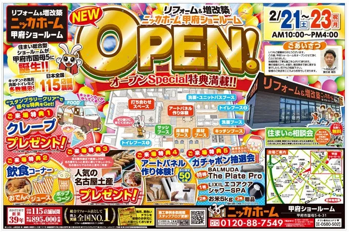 「ニッカホーム甲府営業所」は、山梨県甲府市に新たなリフォームの拠点を提供することで、地域住民にとってますます便利な存在になることでしょう。オープンイベントに是非足を運んで、新しいサービスを体験してみてください。皆さまのご来場を心よりお待ちしております。