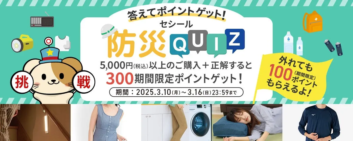 3月11日は「防災意識を育てる日」として、株式会社セシールが特別なキャンペーンを展開します。この日にちなみ、防災に対する意識を高めるために、さまざまな防災商品に関するクイズが行われます。クイズに回答することでポイントがもらえるお得なチャンスです。