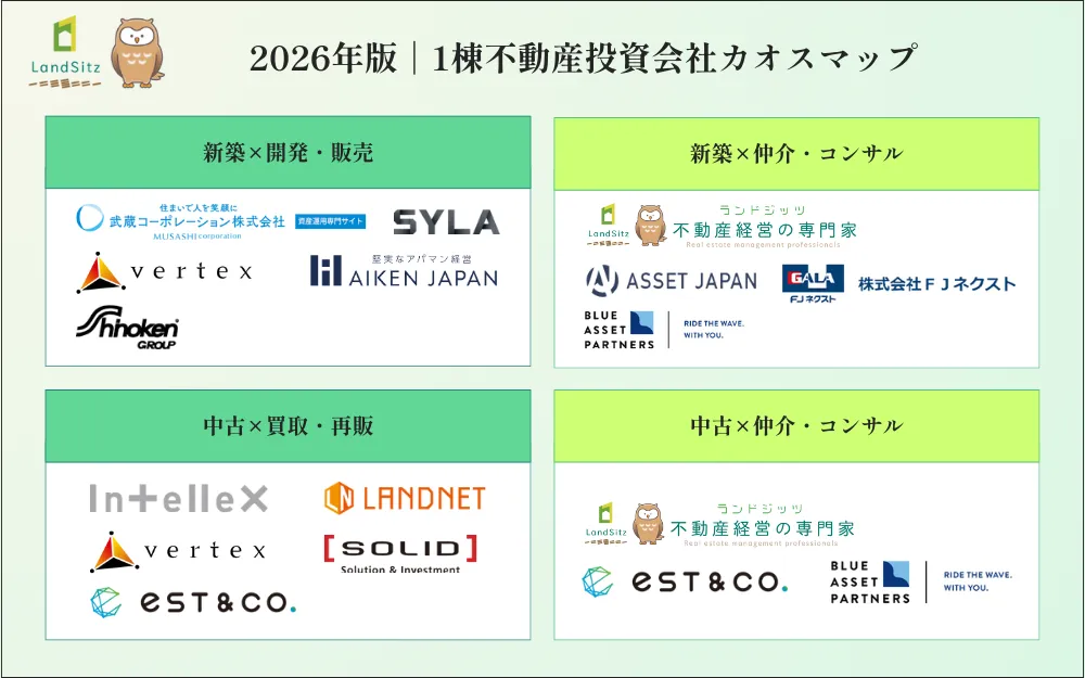 不動産投資は、資産形成の一翼を担う重要な手段ですが、特に国内市場においては、多様なプレイヤーが存在し、選択肢が豊富です。しかし、投資家にとっては、どの会社にアプローチすれば良いのか、また自分のニーズに合ったサービスを見極めるのは容易ではありません。このような課題を解決するために、株式会社LandSitzが「2026年版|1棟不動産投資会社カオスマップ」と「2026年版|不動産投資メディアカオスマップ」という二種類のカオスマップを公開しました。