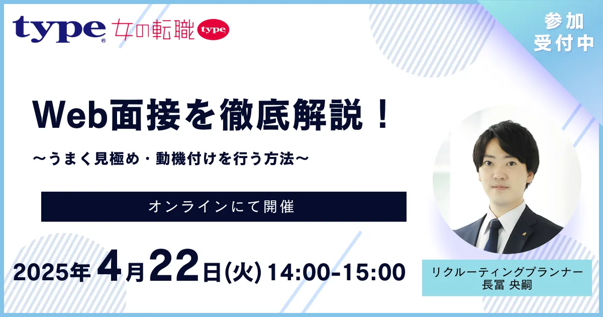 転職活動が盛んになる中、特にWeb面接の重要性が高まっています。転職サイト「type」は、2025年4月22日(火)14:00から、Web面接をテーマにしたオンラインセミナーを開催します。このセミナーでは、Web面接の実施に関するさまざまなテクニックやノウハウが紹介されます。