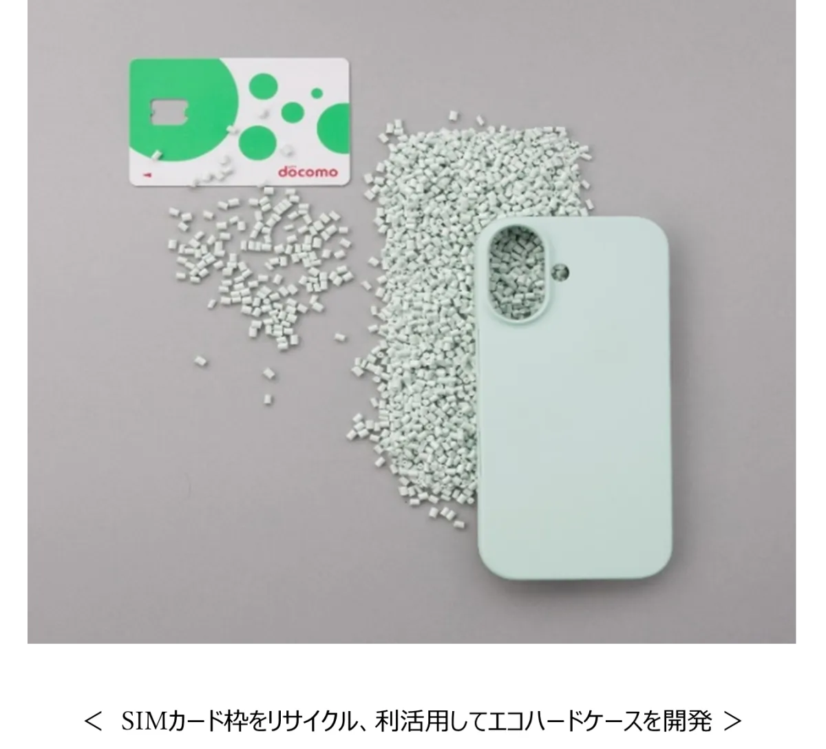 ドコモでは1998年から携帯電話のリサイクル活動「ドコモ ケータイリサイクル」に取り組んでおり、その中で集めたSIMカード枠を100%リサイクル素材に利用しています。これまで、回収した素材は資源として売却していましたが、今回は自社の製品として再利用する新たなステップを踏み出しました。これにより、廃棄物の減少と環境保全を同時に図っています。