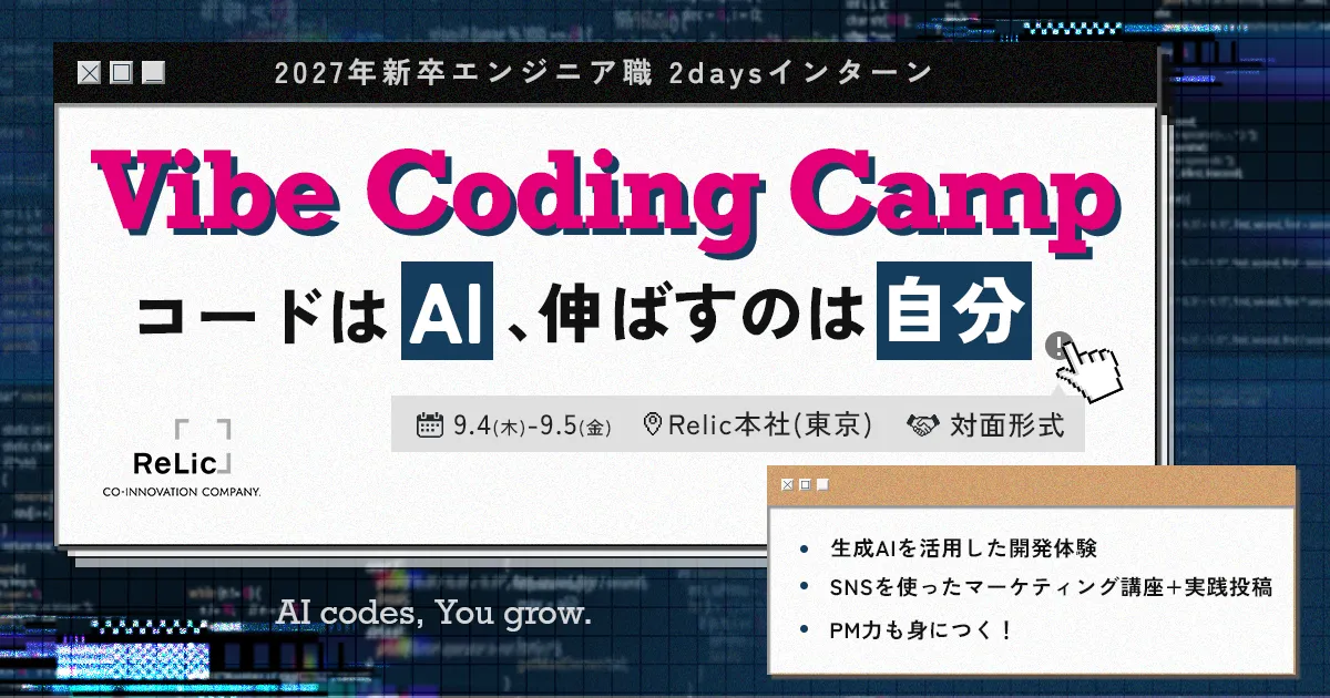 株式会社Relicが開催するインターンシップ「Vibe Coding Camp」