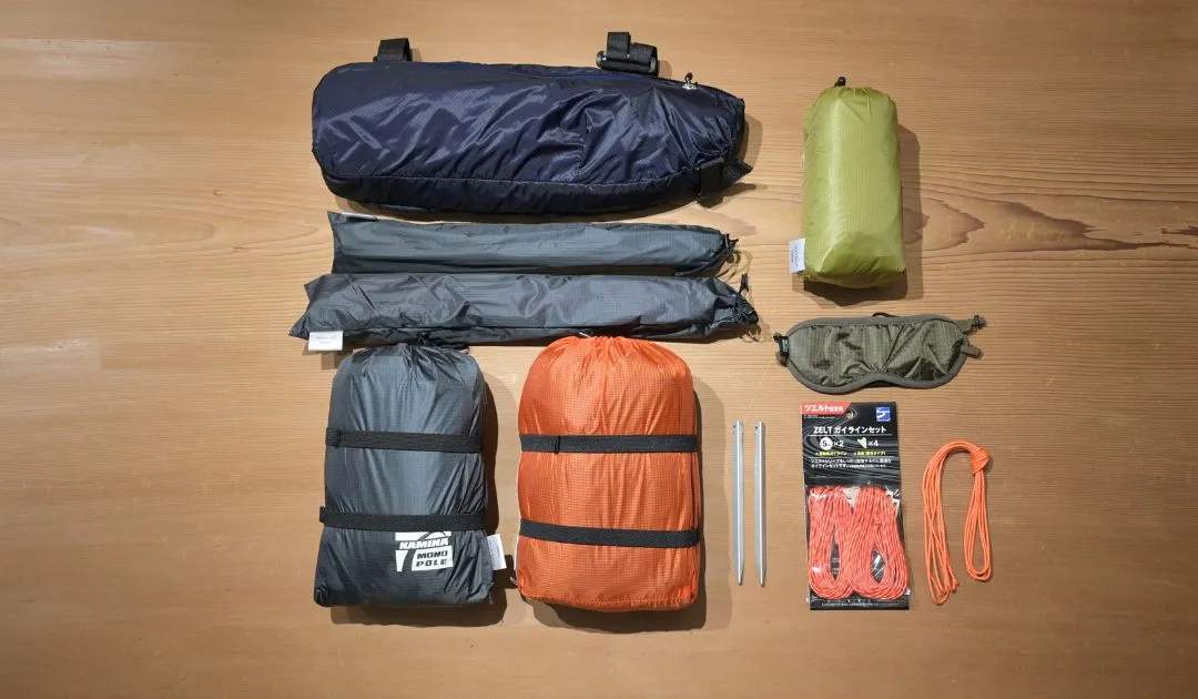 - - カミナモノポール1/カミナモノポール2購入者にも同様に「ペグ」「細引き」「アイマスク」「ツーリングバッグ」からお好きな2点を選んでいただけます。