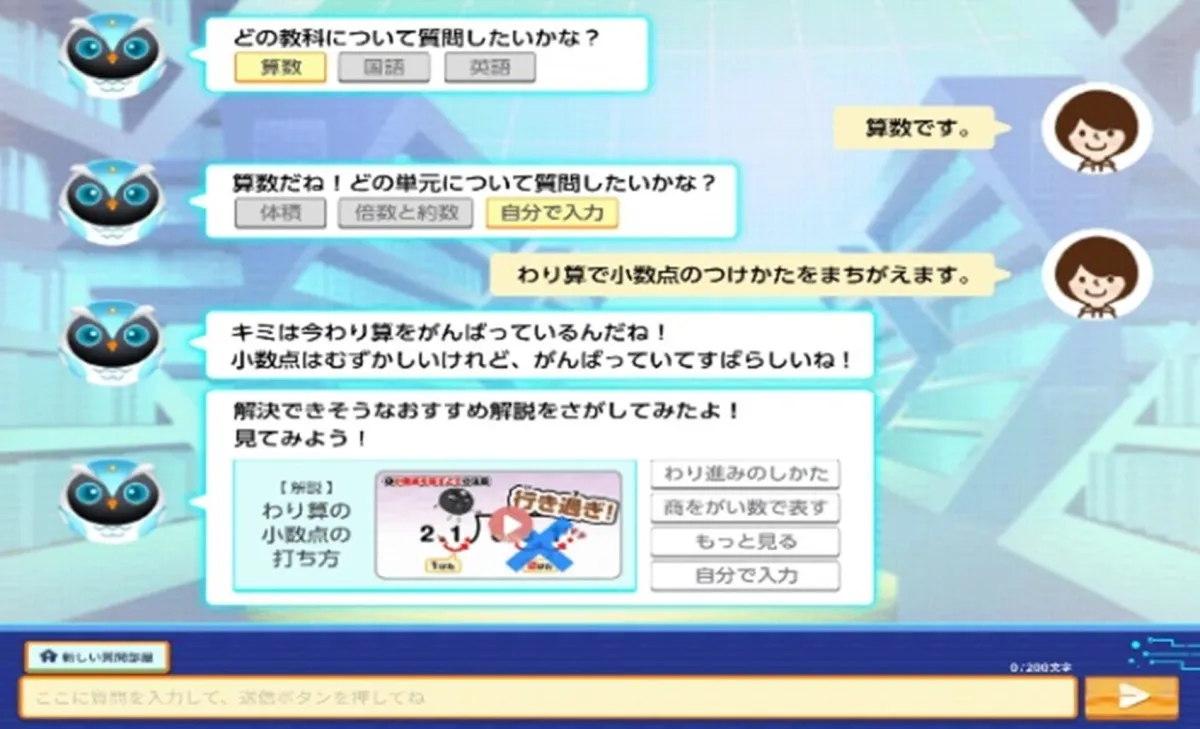 AIとの会話で褒めや励ましを行い、質問するハードルを下げます。