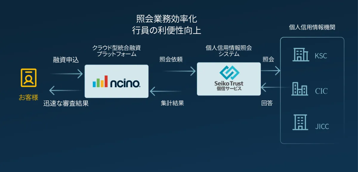 今回の提携では、nCinoの提供する融資業務プラットフォームと、セイコーソリューションズの「Seiko Trust 個信サービス」が連携し、審査プロセスにおける個人信用情報の取り込みが自動化されます。これにより、事務作業の大幅な削減が可能となり、業務のスピードアップが見込まれています。