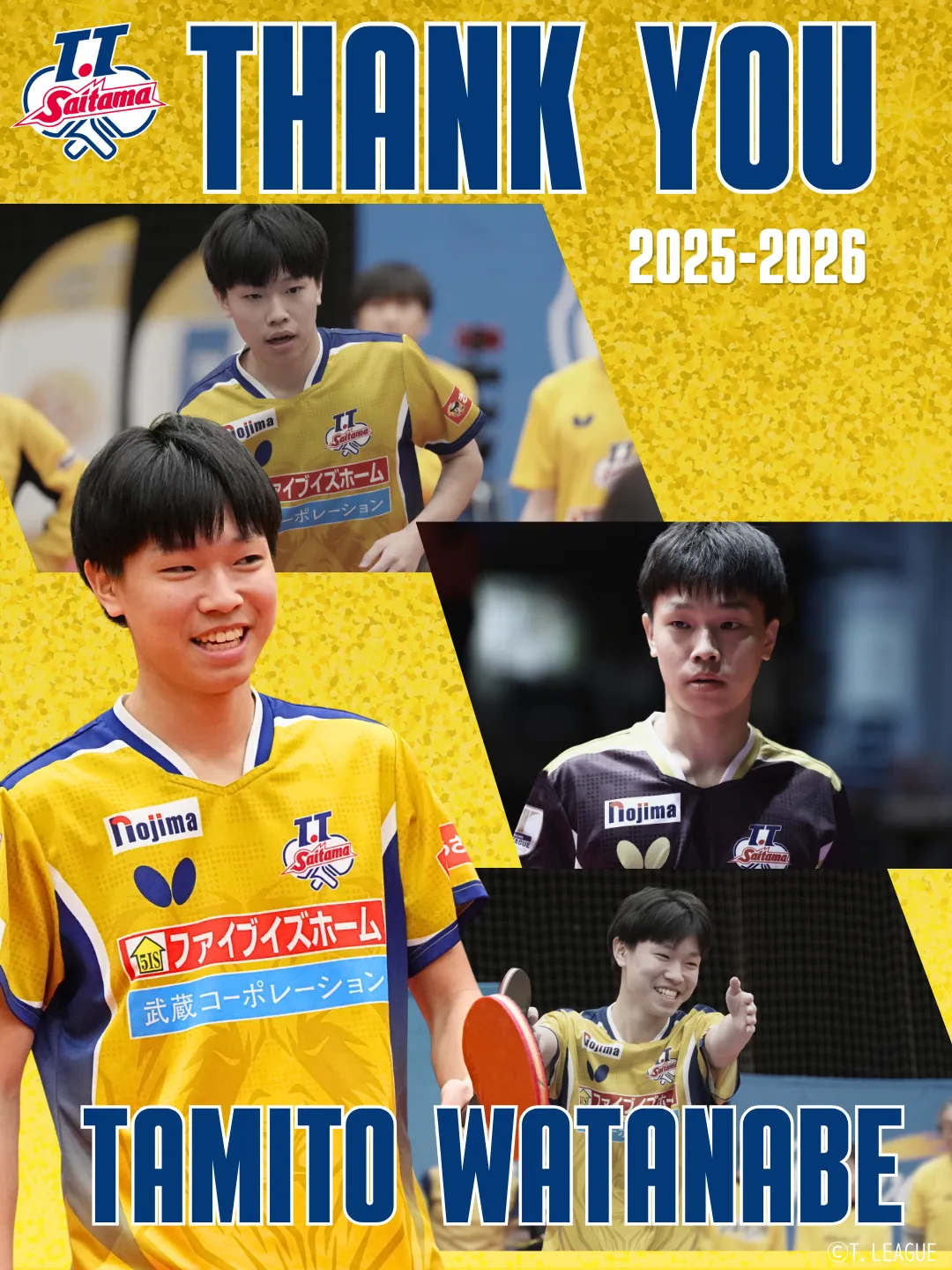 卓球界での新たなスピリット、T.T彩たまの渡部民人選手が、契約満了によってT.T彩たまを退団することが決定しました。若干17歳の選手でありながら、その表現力と技術で多くのファンを魅了してきた彼の動向から目が離せません。