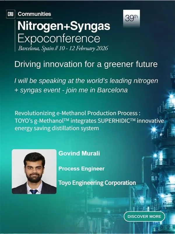 2026年2月10日から12日までの間、スペイン・バルセロナにて「CRU Nitrogen+Syngas Expoconference」が開催されます。この国際的なイベントは、窒素および合成ガスに関する最新情報を網羅し、特にアンモニア、尿素、水素、メタノールといった多様な分野に焦点を当てています。この機会に多くの企業や専門家が集まり、最先端の技術やプロセスの紹介が行われる予定です。