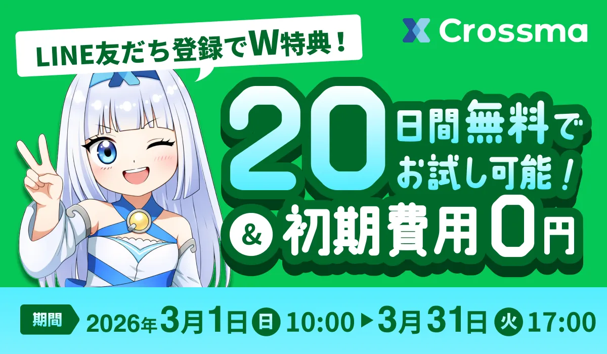 株式会社IZUMIが提供する「クロスマ」は、2026年3月1日から31日までの間、特別なキャンペーンを開催します。今回のキャンペーンは、LINE公式アカウントに友だち登録を行うことで特典を得られるというものです。具体的に言うと、初期費用がなんと0円、さらに20日間の無料トライアルが詰まった「ダブル特典」の内容が含まれています。