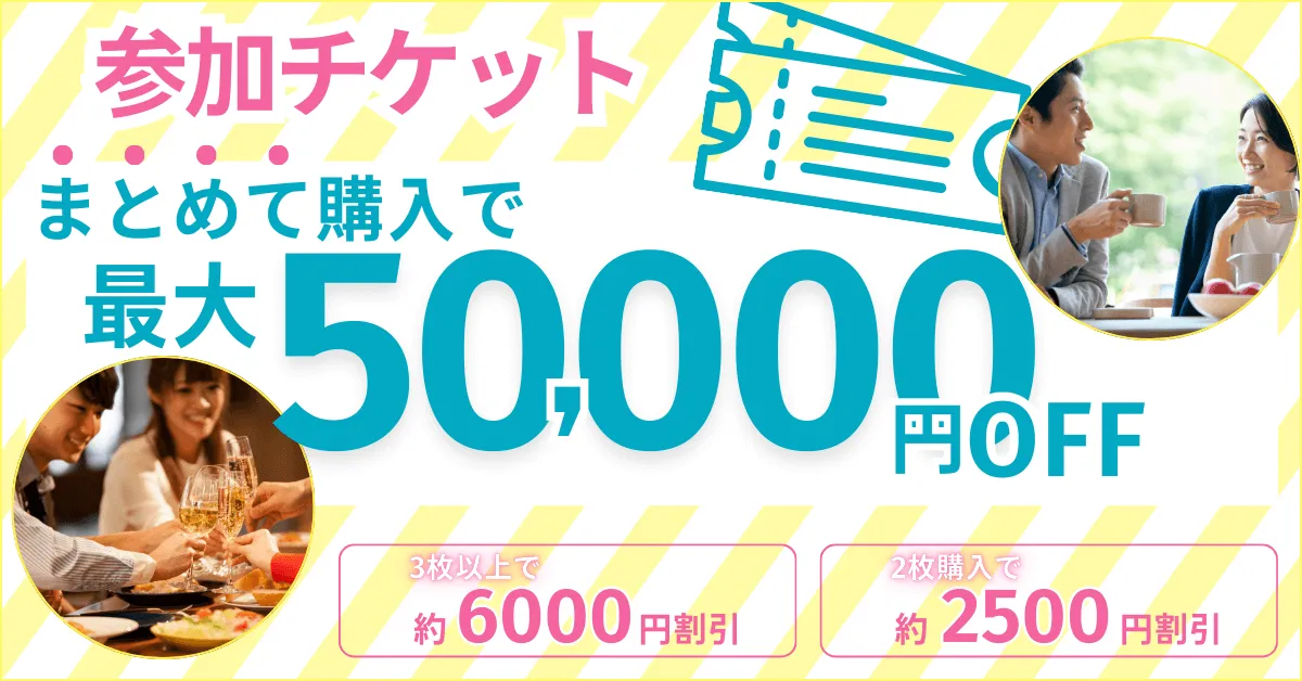 合コンやお見合い形式の「おみコン」を通じて、多くのユーザーにリアルな出会いの機会を提供している合コンマッチングサービス「コンコイ(concoi)」が2025年12月31日までの期間限定で、参加チケットのまとめ買いによる特別キャンペーンをスタートします。このキャンペーンでは、購入枚数に応じて最大5万円お得になる割引が適用されます。