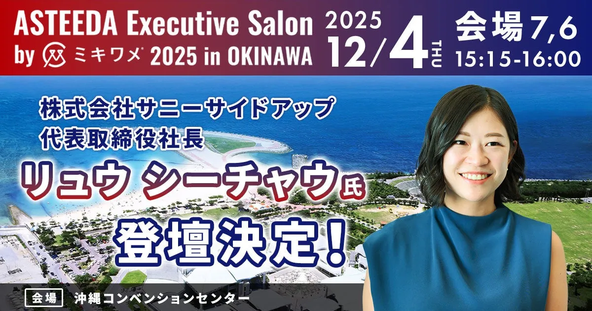 2025年12月4日から6日まで、沖縄コンベンションセンターで開催される「アスティーダエグゼクティブサロン by ミキワメ」。このイベントは、各業界のトップリーダーが一堂に会し、日本の未来を議論し新たなビジネスの共創を目指す、特別な招待制のサロンです。