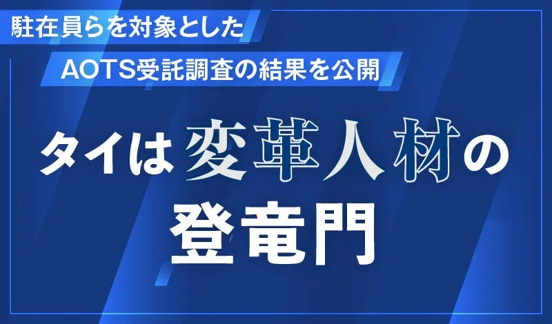Mediator株式会社は、海外産業人材育成協会(AOTS)バンコク事務所から委託を受け、「日タイ共創促進のためのビジネスリーダー創出に関する基礎調査」を行い、2024年から2025年にかけて調査を実施しました。この調査は、タイでの新しい挑戦をリードする「変革人材」に焦点を当てて行われ、その結果が公開されました。