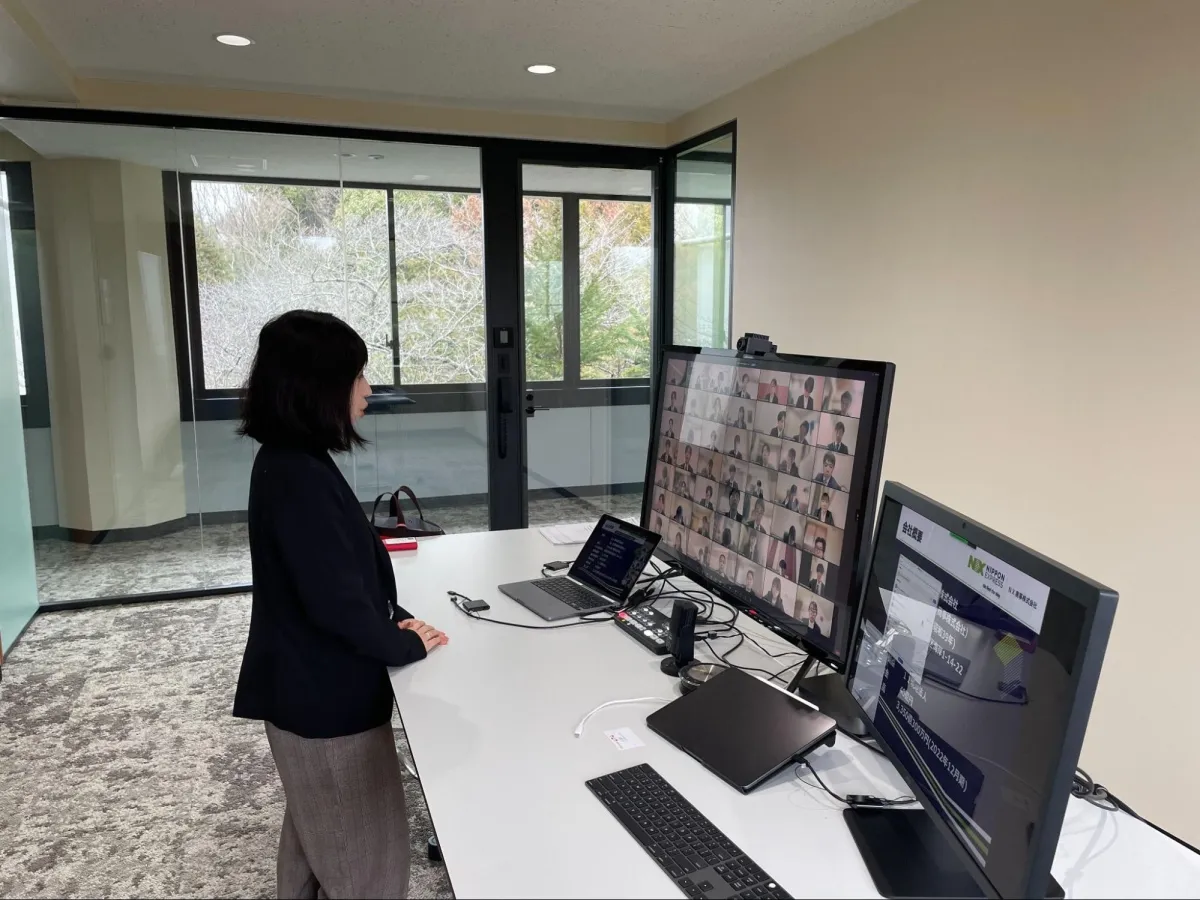 本校の研究会は大学主催の就職支援行事でありながら、オンライン形式でも求められるビジネス姿勢が反映されています。学生はスーツの着こなしや視聴態度に気を付け、質疑応答への積極的な参加が求められます。このプロセスを通じて、他の学生の取り組みを観察することで、自自身の準備状況を評価し、今後の行動に活かすことができます。