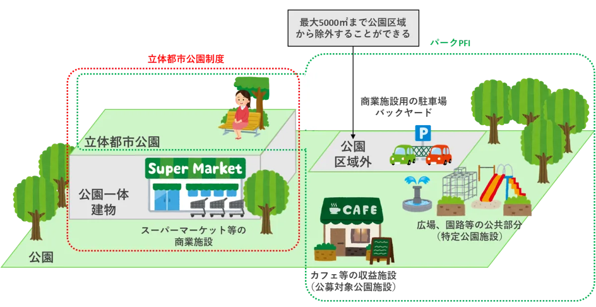 「立体都市公園制度」を採用することで、公園の下部空間に都市公園法の制限がなくなり、土地の効率的な利用が可能になります。特に都市部においては土地が貴重なため、こうした制度は特に重要です。これにより、地下空間には多様な用途を持たせることができ、地域のニーズに応える空間が生まれます。