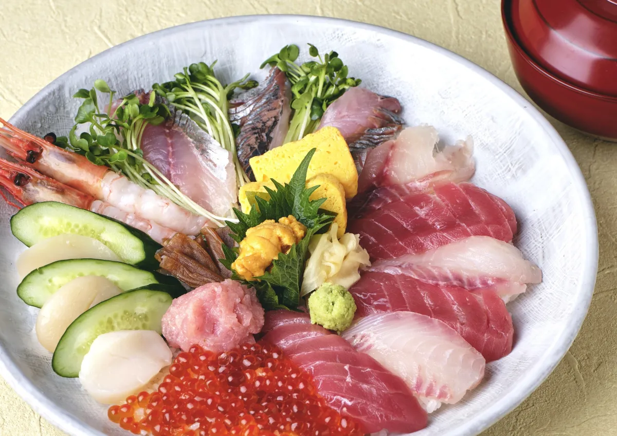 新鮮な海の幸をたっぷりと盛り込んだ海鮮丼。見た目の美しさはもちろん、旬の旨味を存分に楽しめます。