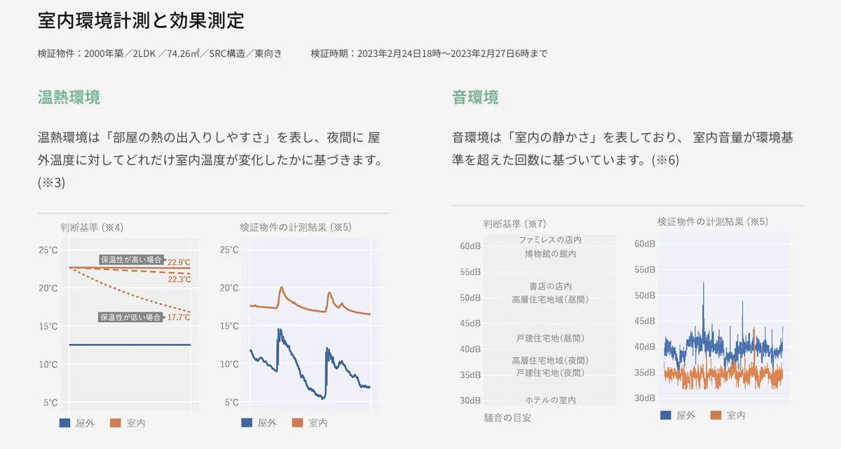 リクルートの取り組みは、単なる住まい探しにとどまらず、住宅そのものの性能を向上させることを目指しています。具体的には、省エネルギーリノベーションを行う際に、既存集合住宅にIoTセンサを取り付け、温熱や音環境に関するデータを収集することにより、住宅環境の快適度を権威ある数値として評価します。