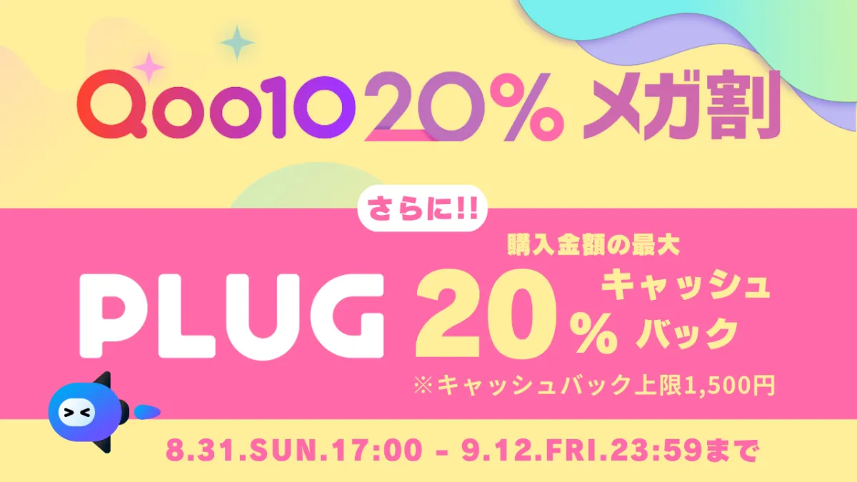 株式会社STRACTが提供するショッピングアシストアプリ『PLUG』が、人気のECサイトQoo10で開催される「メガ割」セールに合わせ、特別なキャンペーンを実施します。今回のプロモーションでは、2025年8月31日(日)17:00から2025年9月12日(金)23:59までの期間中、PLUGを利用してQoo10で買い物をしたお客様に、購入金額の最大20%がキャッシュバックされる嬉しい特典が用意されています。
