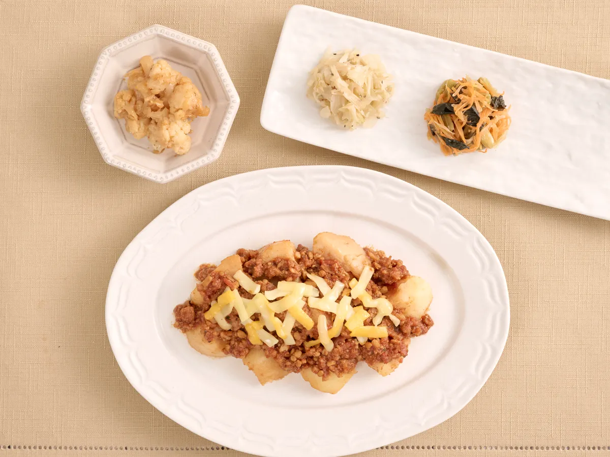 この商品の最大の特徴は、ノンオイルのこだわり抜いた大豆ミートを使用していることです。従来のボロネーゼソースに比べて、脂質やカロリーを大幅に抑えつつ、十分なコクを実現しました。和風の佇まいを見せるじゃがいもとの食感の相性も抜群で、一口食べると満足感が広がります。栄養のバランスを大切にしつつ、何よりも味を追求した商品です。