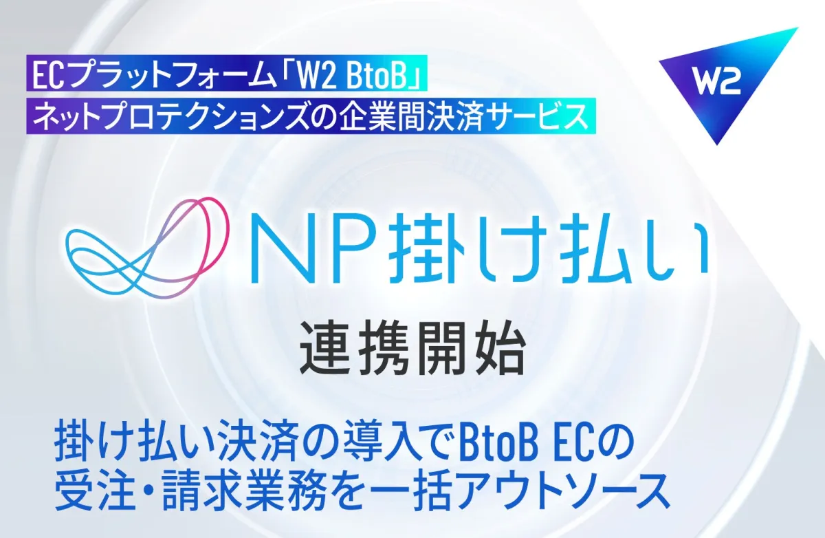 2023年、W2株式会社がBtoB向けECプラットフォーム「W2 BtoB」と、ネットプロテクションズが提供する企業間決済サービス「NP掛け払い」の連携を開始しました。この提携により、企業間取引のさらなる効率化とEC売上の向上が期待されます。