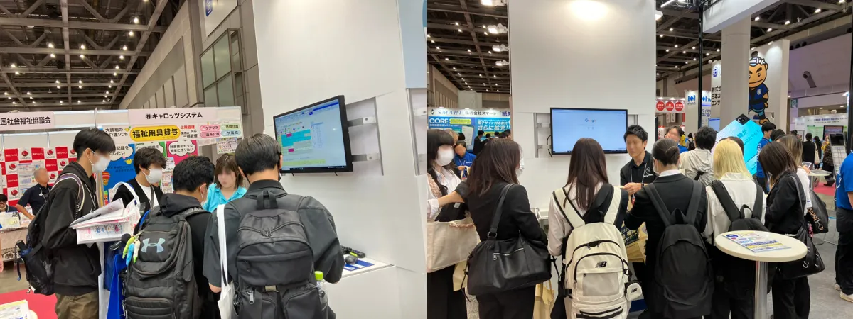 調査参加者はNDソフトウェアブースを訪れた福祉に興味のある学生であり、その中で就職先に求める条件や展示に対する関心度などが幅広く聞かれました。参加者からは次のような質問がされました。