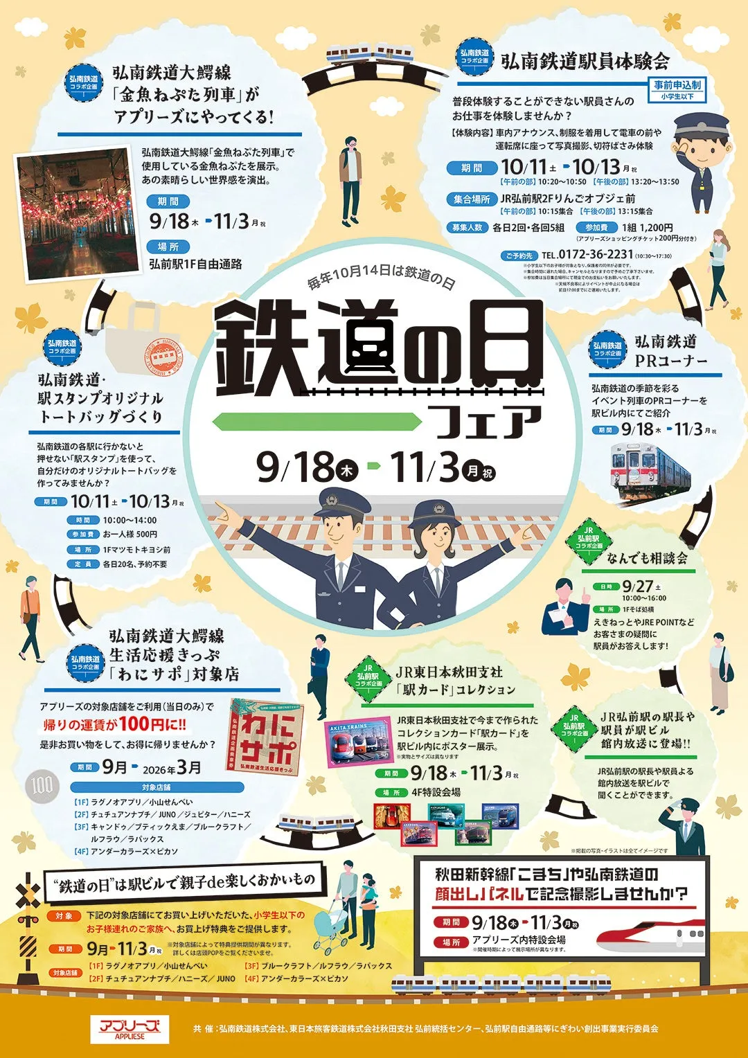 弘南鉄道が提供する季節ごとのイベント列車の紹介が駅ビル内で行われます。こちらも同じく期間は9月18日から11月3日。鉄道ファンには嬉しいポイントです。