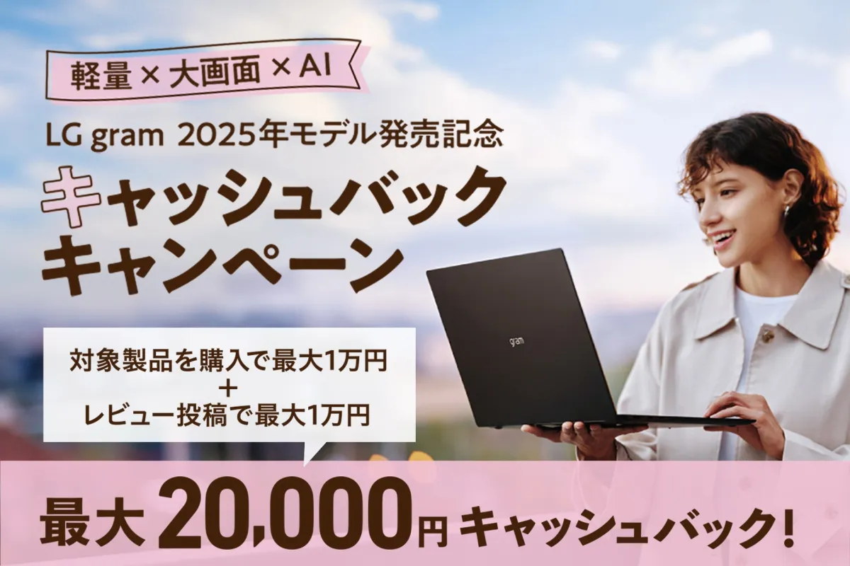 LGエレクトロニクス・ジャパンが、2025年モデルとなるモバイルノートパソコン「LG gram」の発売を記念し、特別なキャッシュバックキャンペーンを実施しています。このキャンペーンは、最近発売された最新モデルがターゲットで、消費者には最大2万円のキャッシュバックのチャンスが提供されています。