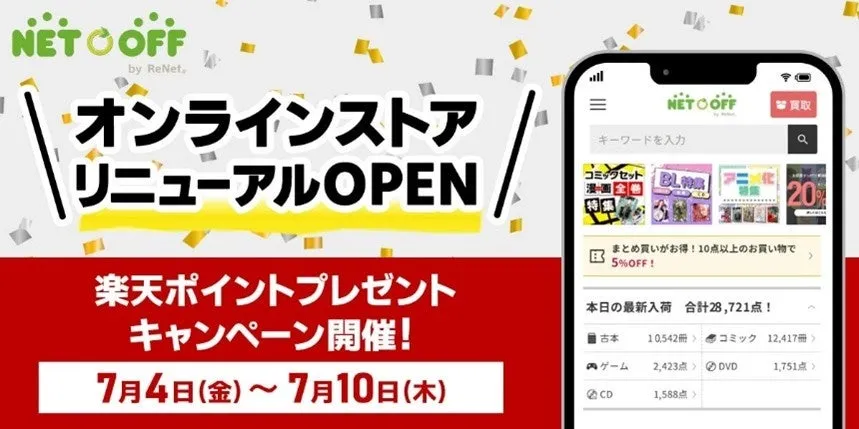 古本やゲームといったリユース商品を扱うネットオフが大規模なサイトリニューアルを行いました。運営しているリネットジャパングループ株式会社は、この新たな試みにおいて、より多くのユーザーに便利で使いやすいショッピング体験を提供することを目指しています。